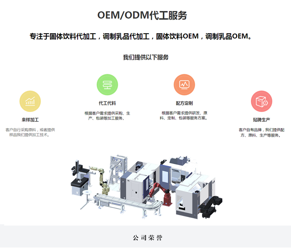公司采用干法生产工艺,生产设备配备可满足特殊医学用途配方食品、调制乳粉、固体饮料等产品的生产需要。生产车间按两个生产区、六条包装线划分,日生产能力可达45吨。生产